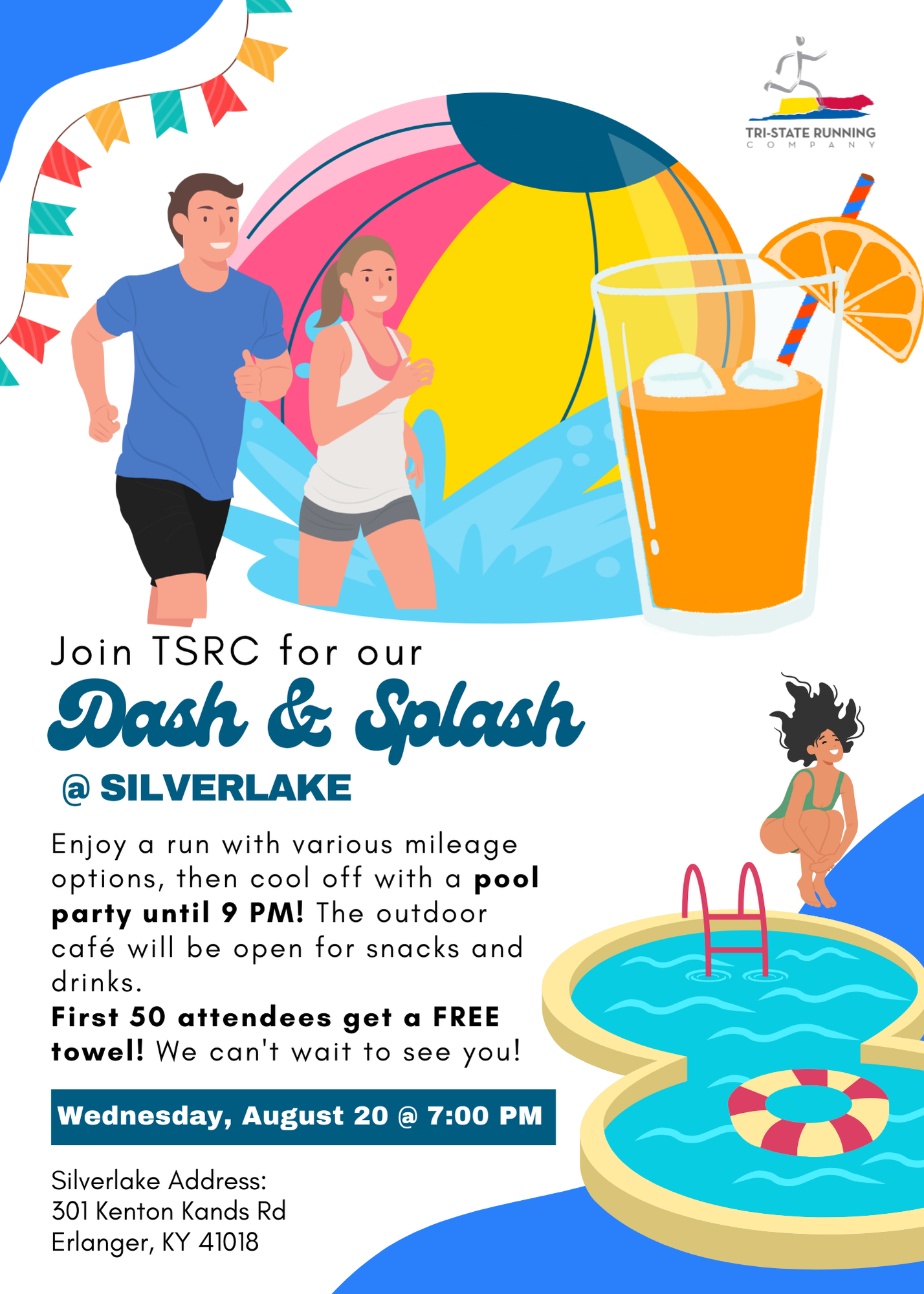 Silverlake: the Family Place 301 Kenton Lands Rd, Erlanger, KY, United StatesJoin TSRC for our Dash & Splash @ Silverlake! Enjoy a run with various mileage options, then cool off with a pool party until 9 PM! The outdoor café will be open for snacks and drinks. The first 50 attendees get a FREE towel! Important Waiver Information To save time and ensure a smooth check-in, […]